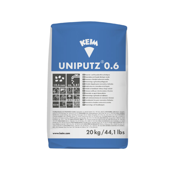 KEIM UNIPUTS 0.6 är en fin renoverings- och tunnskiktputs kalkcementbas med tillsatser och fiberarmering.